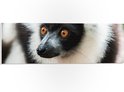 WallClassics - Plaque de Mousse PVC - Singe Vari aux Yeux Marrons Gros Plan - 60x20 cm Photo sur Plaque de Mousse PVC