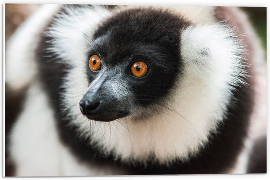 WallClassics - Plaque de Mousse PVC - Singe Vari aux Yeux Marrons Gros Plan - Photo 60x40 cm sur Plaque de Mousse PVC (Avec Système d'accrochage)