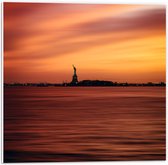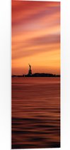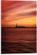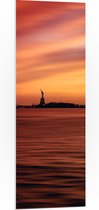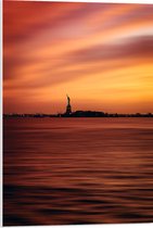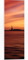 WallClassics - Plaque de Mousse PVC - Statue de la Liberté à New York vue de loin avec Coucher de Soleil - 30x40 cm Photo sur Plaque de Mousse PVC