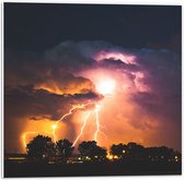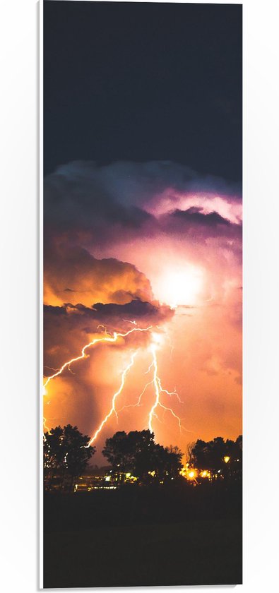 WallClassics - Plaque de Mousse PVC - Violet/ Oranje Tonnerre au-dessus d'une Rangée d' Arbres - Photo 20x60 cm sur Plaque de Mousse PVC (Avec Système d'accrochage)