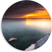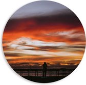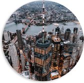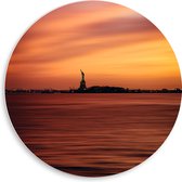 WallClassics - Plaque de mousse PVC Wall Circle - Oranje Sky over Statue of Liberty in New York - 80x80 cm Photo sur Wall Circle (avec système d'accrochage)