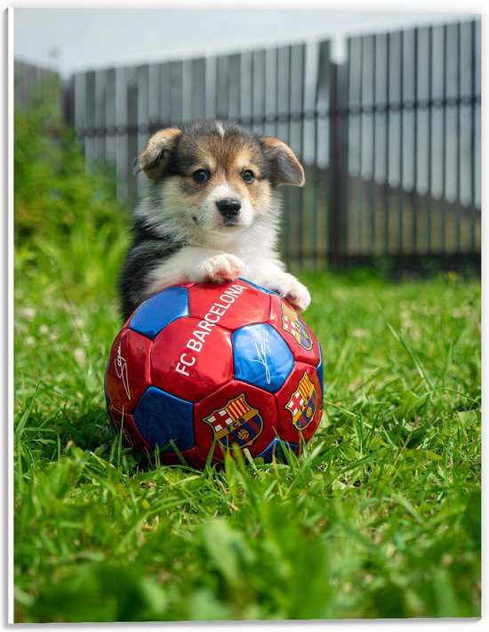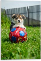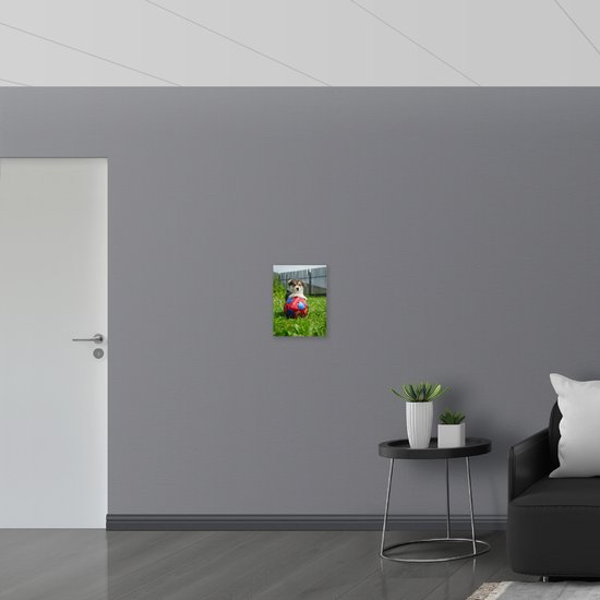 WallClassics - Plaque en Mousse PVC - Chien Joue au Voetbal - Photo 30x40 cm sur Plaque en Mousse PVC (Avec Système d'accrochage)