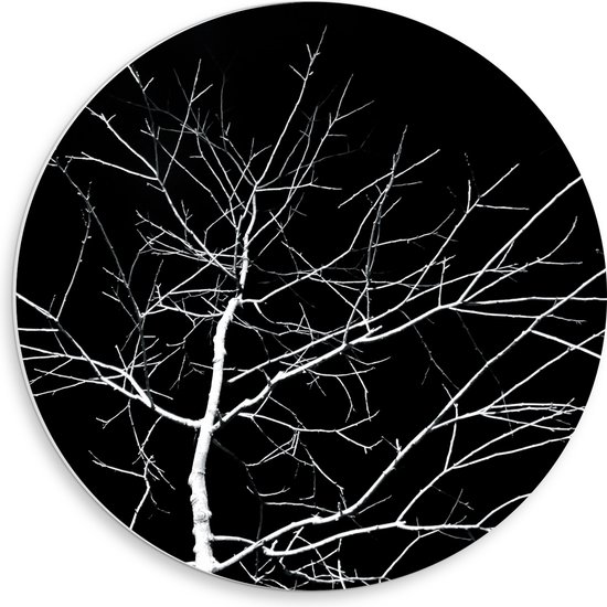 WallClassics - Plaque Mousse PVC Cercle Mural - Arbre Witte Nu Fond Noir - Photo sur Cercle Mural 50x50 cm (avec système d'accrochage)