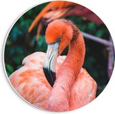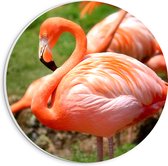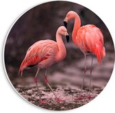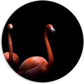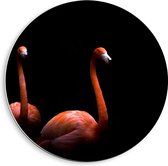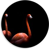 WallClassics - Plaque Mousse PVC Cercle Mural - Deux Flamants Roses sur Fond Noir - Photo 20x20 cm sur Cercle Mural (avec système d'accrochage)