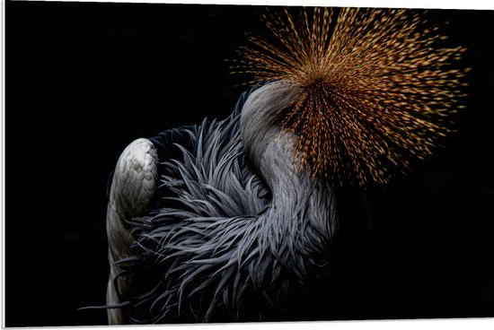 WallClassics - Plaque Mousse PVC - Grue Couronnée Grise sur Fond Noir - Photo 90x60 cm sur Plaque Mousse PVC (Avec Système d'accrochage)