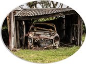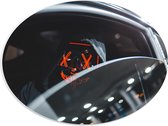 WallClassics - Plaque Ovale en Mousse PVC - Homme avec Masque Lumineux en Voiture - 56x42 cm Photo sur Ovale (Avec Système d'accrochage)