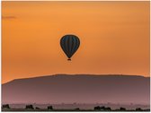 WallClassics - Poster (mat) - Blauw avec montgolfière Witte au-dessus d'un champ plein de bisons - 120 x 40 cm Photo sur papier poster avec un aspect mat