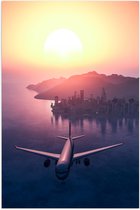 WallClassics - Poster brillant - Avion au coucher du soleil sur la mer - Photo 60x90 cm sur papier poster brillant