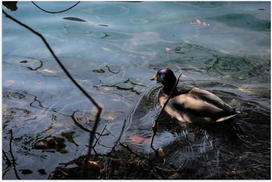 WallClassics - Poster Brillant - Canard Nagant dans l' Water - 75x50 cm Photo sur Papier Poster avec Finition Brillante