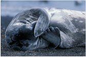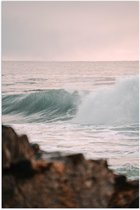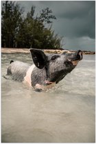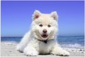WallClassics - Poster brillant – Chien finlandais de Laponie au bord de la mer – 105 x 70 cm Photo sur papier poster avec finition brillante