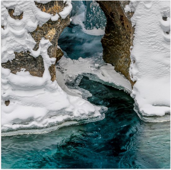WallClassics - Poster brillant – Grotte sur l'océan enneigé - Photo 50x50 cm sur papier poster brillant