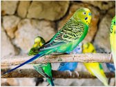 WallClassics - Poster brillant – Perruche sur bâton en bois – Photo 80 x 60 cm sur papier poster brillant