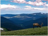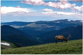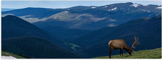 WallClassics - Poster (Matte) - Cerf broutant sur la plus haute Berg de Berggebied - 120x40 cm Photo sur Papier Poster d'aspect Mat