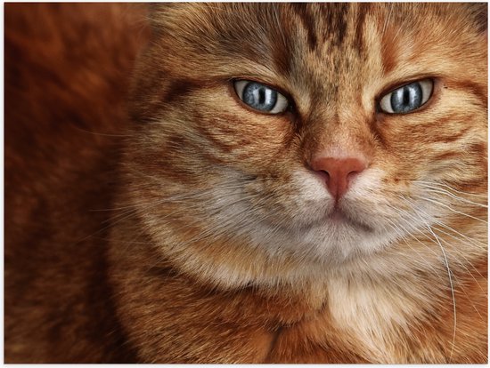 WallClassics - Poster (Matte) - Chat Oranje aux Yeux Bleus - 40x30 cm Photo sur Papier Poster avec un aspect Mat
