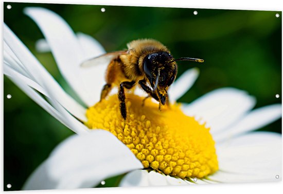 WallClassics - Poster de jardin - Abeille sur marguerite - 150 x 100 cm Photo sur poster de jardin (décoration murale pour extérieur et intérieur)