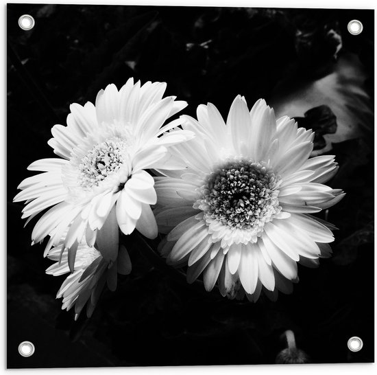 WallClassics - Poster de Jardin - Bloem de Camomille Zwart / Wit - 50x50 cm Photo sur Poster de Jardin (décoration murale pour l'extérieur et l'intérieur)