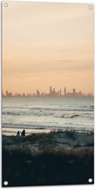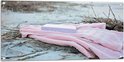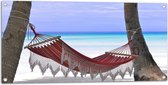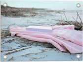 WallClassics - Poster de jardin - Boek avec serviette sur plage beige - 100 x 50 cm Photo sur poster de jardin (décoration murale pour extérieur et intérieur)