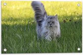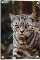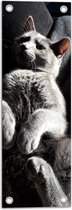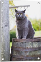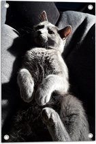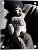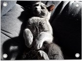 WallClassics - Poster de Jardin - Chat Paresseux Gris sur le Canapé - 60x40 cm Photo sur Poster de Jardin (décoration murale pour l'extérieur et l'intérieur)