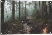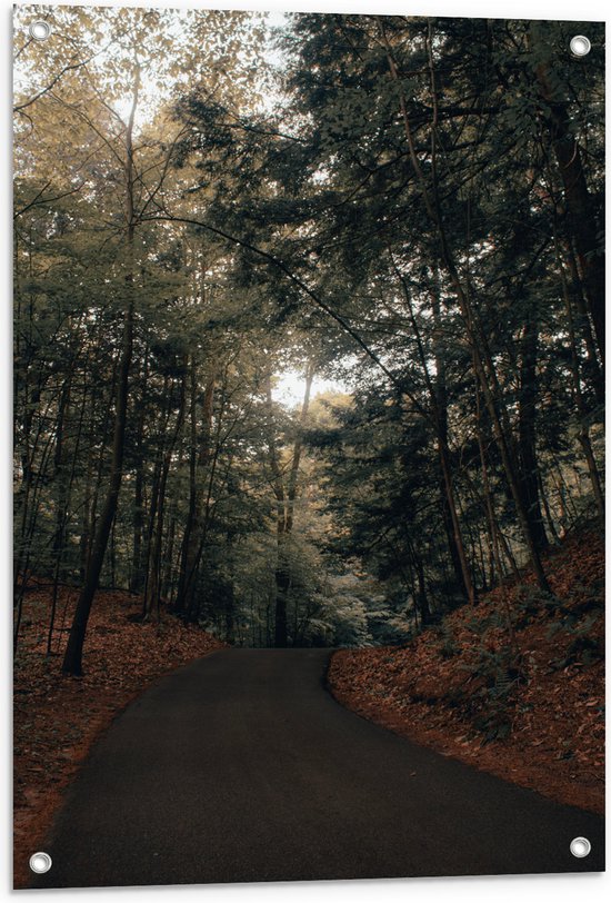 WallClassics - Poster de jardin – Chemin à travers la forêt - 60 x 90 cm Photo sur poster de jardin (décoration murale pour l'extérieur et l'intérieur)