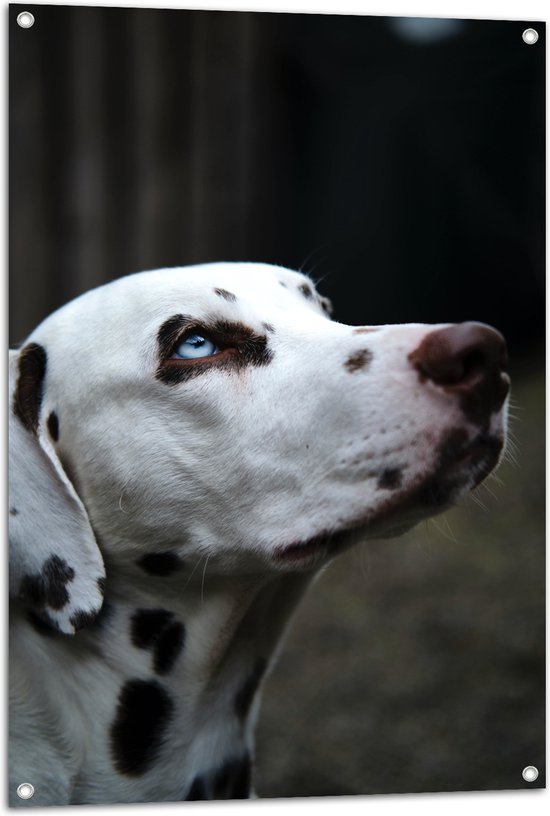 WallClassics - Poster de Jardin - Chien Dalmatien aux Yeux Bleus - 70x105 cm Photo sur Poster de Jardin (décoration murale pour l'extérieur et l'intérieur)