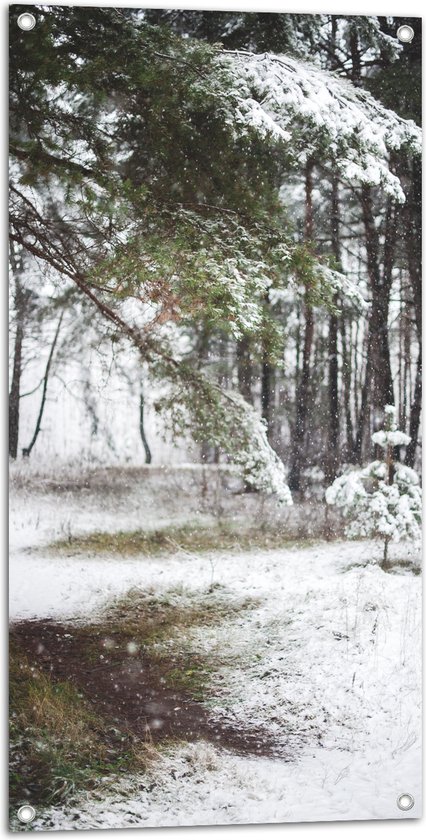 WallClassics - Poster de jardin - Chute de neige sur les Arbres - 50x100 cm Photo sur Poster de jardin (décoration murale pour l'extérieur et l'intérieur)
