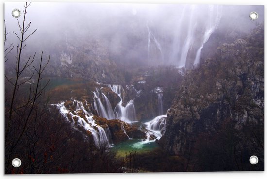 WallClassics - Poster de jardin - Chutes d'eau multiples dans la nature - 60x40 cm Photo sur Poster de jardin (décoration murale pour l'extérieur et l'intérieur)