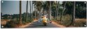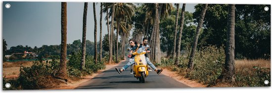 WallClassics - Poster de Jardin - Couple sur un Scooter Jaune - 120x40 cm Photo sur Poster de Jardin (décoration murale pour l'extérieur et l'intérieur)