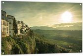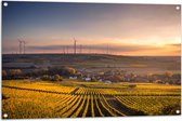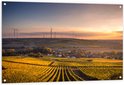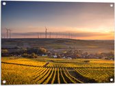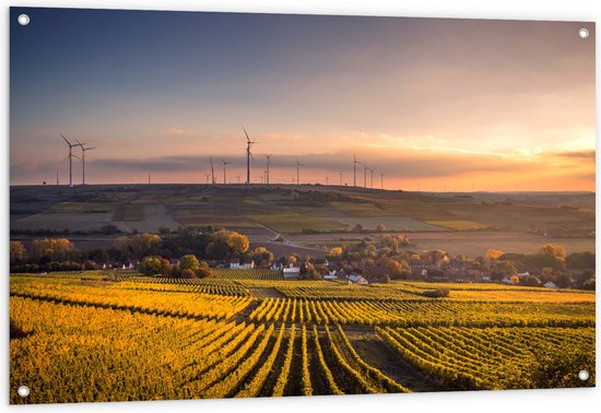 WallClassics - Poster de jardin - Moulins à vent en bordure de village - 120x80 cm Photo sur Poster de jardin (décoration murale pour l'extérieur et l'intérieur)