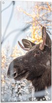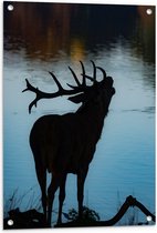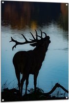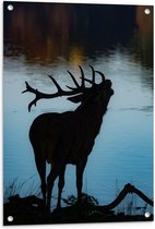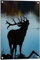 WallClassics - Poster de jardin - Silhouette d'un élan au bord d'un lac - 50x100 cm Photo sur Poster de jardin (décoration murale pour l'extérieur et l'intérieur)