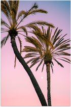WallClassics - Poster (Matte) - Deux Palmiers avec Ciel Rose-Bleu - 50x150 cm Photo sur Papier Poster à l'Aspect Mat