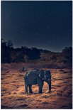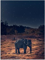 WallClassics - Poster (Matte) - Éléphant sous le ciel étoilé - 40x60 cm Photo sur Papier Poster avec un aspect Mat