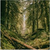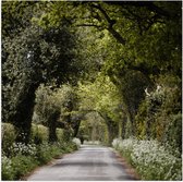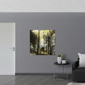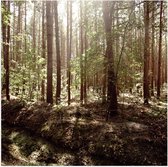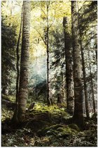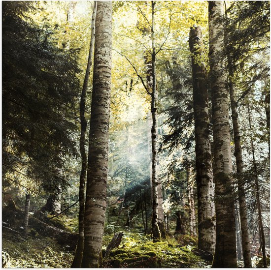 WallClassics - Poster Glossy - Arbres Verts avec Soleil - 100x100 cm Photo sur Papier Poster avec Finition Brillante