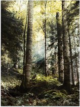 WallClassics - Poster Glossy - Arbres Verts avec Soleil - 20x60 cm Photo sur Papier Poster avec Finition Brillante