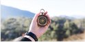WallClassics - Poster Glossy - Boussole dans les Montagnes - 100x50 cm Photo sur Papier Poster avec Finition Brillante