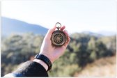 WallClassics - Poster Glossy – Boussole dans les Montagnes - 100x75 cm Photo sur Papier Poster avec Finition Brillante