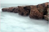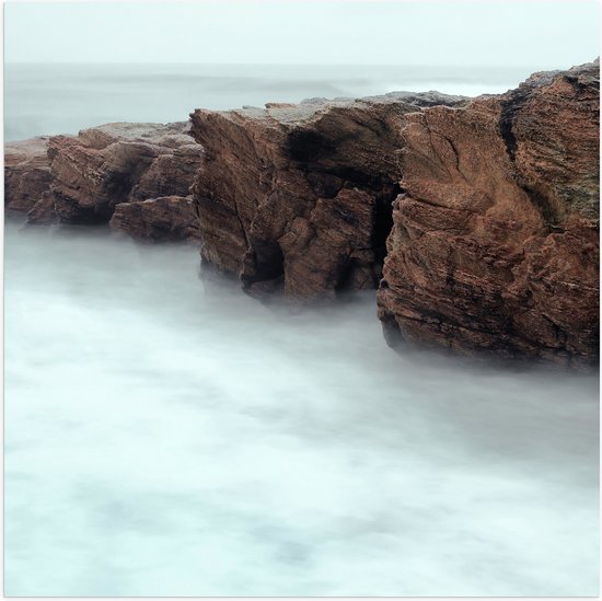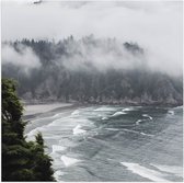 WallClassics - Poster Glossy - Brouillard à la Montagnes et à la Mer - 50x50 cm Photo sur Papier Poster avec Finition Brillante