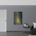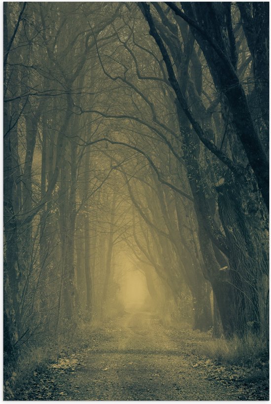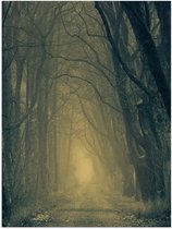 WallClassics - Poster Glossy - Brouillard sur Chemin Forestier Entouré d' Arbres - 80x120 cm Photo sur Papier Poster avec Finition Brillante