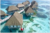 WallClassics - Poster Glossy - Bungalows à la Mer sur un IJland - Photo 40x30 cm sur Papier Poster avec Finition Brillante