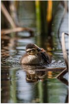 WallClassics - Poster Glossy - Caneton nageant dans l' Water - 20x60 cm Photo sur Papier Poster avec Finition Brillante