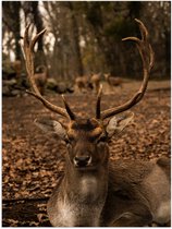 WallClassics - Poster Glossy - Cerf Brun dans les Forêts - 30x40 cm Photo sur Papier Poster avec Finition Brillante