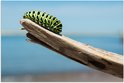 WallClassics - Poster Glossy – Chenille Verte sur une Branche - 90x60 cm Photo sur Papier Poster avec Finition Brillante