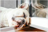 WallClassics - Poster Glossy - Sleeping Dog in the Window Frame - 75x50 cm Photo sur Papier Poster avec Finition Brillante