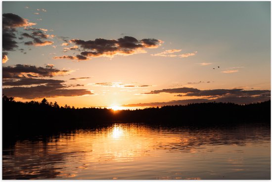 WallClassics - Poster Glossy - Coucher de soleil à l'orée d'une forêt - 90x60 cm Photo sur Papier Poster avec Finition Brillante