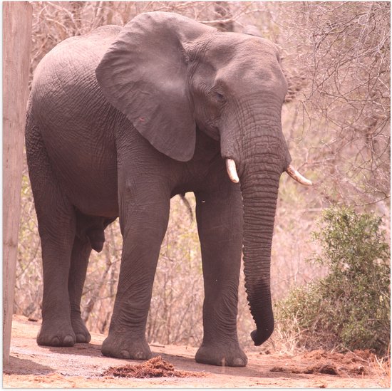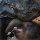 WallClassics - Poster Glossy - Éléphant avec trompe mouillée - 50x50 cm Photo sur Papier Poster avec Finition Brillante
