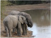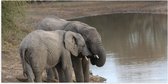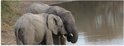 WallClassics - Poster Glossy - Éléphants buvant au bord d'un lac - 90x30 cm Photo sur Papier Poster avec Finition Brillante