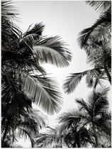 WallClassics - Poster Glossy – Feuilles de Palmier Zwart/ Witte - 40x60 cm Photo sur Papier Poster avec Finition Brillante