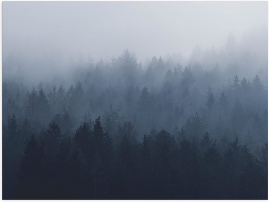 WallClassics - Poster Glossy - Forêt dans la Brume - 80x60 cm Photo sur Papier Poster avec Finition Brillante