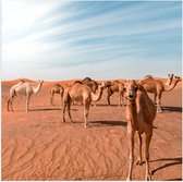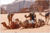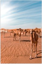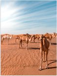 WallClassics - Poster Glossy - Happy Chamels in the Desert - 75x100 cm Photo sur Papier Poster avec Finition Brillante