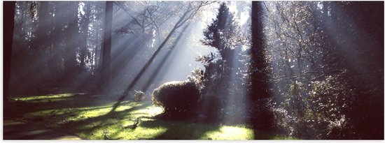 WallClassics - Poster Glossy - Le soleil brille à travers les Arbres - 60x20 cm Photo sur Papier Poster avec Finition Brillante