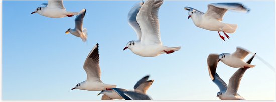 WallClassics - Poster Glossy - Mouettes à la Mer - 60x20 cm Photo sur Papier Poster avec Finition Brillante